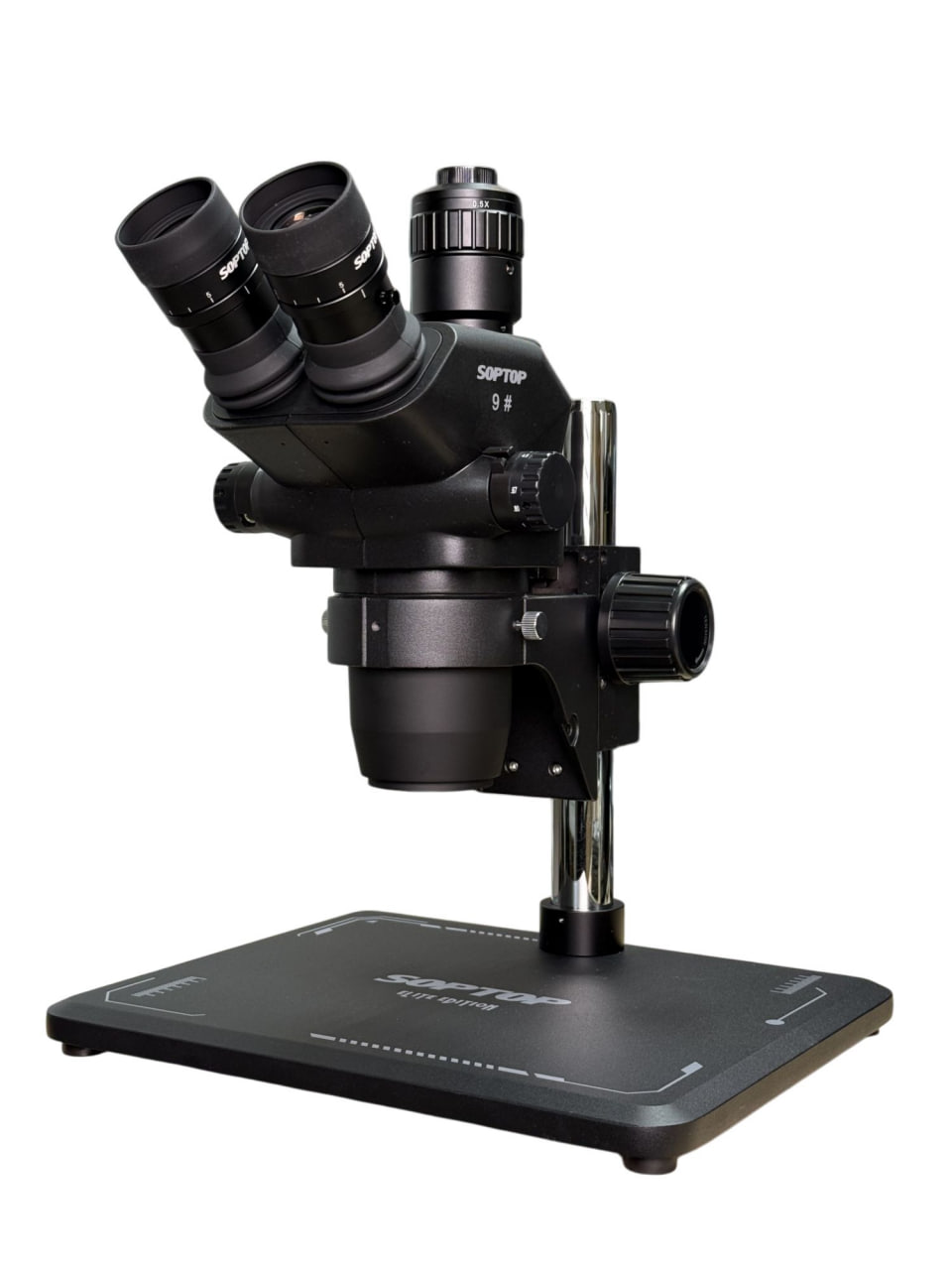 Микроскоп тринокулярный SopTop 9 Elite (С подсветкой и линзой) (6.7-45X / блокируемый глаз) (Черный)